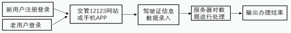 【27】交管12123是互联网交通安全综合服务管理系统,用户户安装并实名注册后,可办理机动车、驾驶证、违法处理等相关业务预约、受理和办理,交通安全信息查询、业务告知提醒、业务导办、道路通行等服务。其中电子驾驶证业务办理流程如图所示,结合题目描述和示意图回答下列问题: